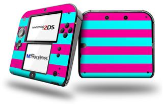 Psycho Stripes Neon Teal and Hot Pink - Decal Style Vinyl Skin fits Nintendo 2DS - 2DS NOT INCLUDED