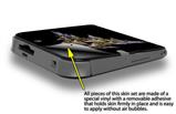 uSkins™ are self adhering vinyl skins that help prevent scratches and look great doing it. Unlike bulky silicon, plastic or metal cases and faceplates, uSkins are designed to be thin and very tough. uSkins are a composite of two layers of commercial grade materials. The bottom layer is a soft, flexible vinyl with a special removable adhesive that is easily positioned, applied without air bubbles. Next we print the bottom layer with UV protected, fade resistant inks that deliver superb photo quality designs in vibrant colors. Finally we bond a professional grade laminate over the entire skin adding a glossy protective finish.