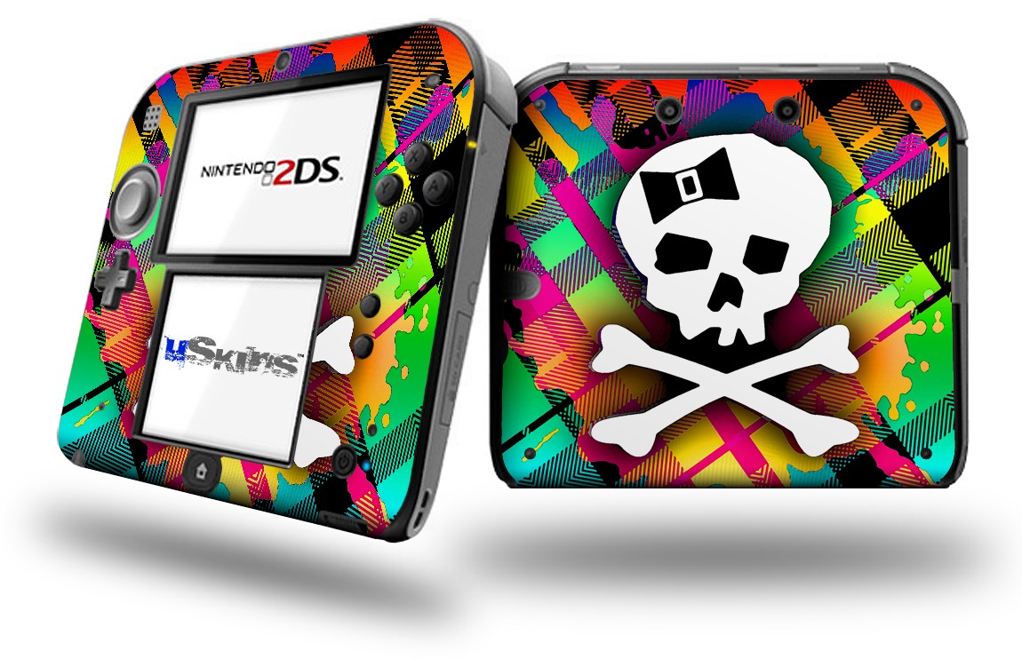 Rainbow Plaid Skull - Decal Style Vinyl Skin fits Nintendo 2DS - 2DS NOT INCLUDED