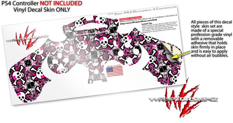 WraptorSkinz Skin compatible with Sony PS4 Dualshock Controller PlayStation 4 Original Slim and Pro Splatter Girly Skull Pink (CONTROLLER NOT INCLUDED)