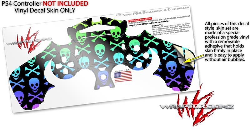 WraptorSkinz Skin compatible with Sony PS4 Dualshock Controller PlayStation 4 Original Slim and Pro Skull and Crossbones Rainbow (CONTROLLER NOT INCLUDED)