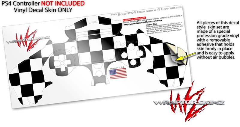 WraptorSkinz Skin compatible with Sony PS4 Dualshock Controller PlayStation 4 Original Slim and Pro Checkers White (CONTROLLER NOT INCLUDED)