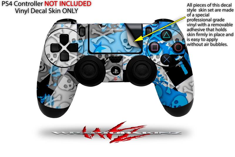 WraptorSkinz Skin compatible with Sony PS4 Dualshock Controller PlayStation 4 Original Slim and Pro Checker Skull Splatter Blue (CONTROLLER NOT INCLUDED)