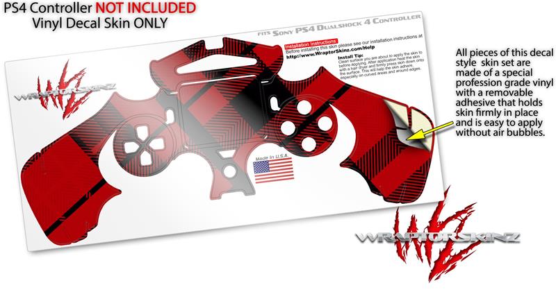 WraptorSkinz Skin compatible with Sony PS4 Dualshock Controller PlayStation 4 Original Slim and Pro Red Plaid (CONTROLLER NOT INCLUDED)