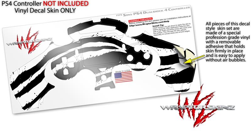 WraptorSkinz Skin compatible with Sony PS4 Dualshock Controller PlayStation 4 Original Slim and Pro Zebra (CONTROLLER NOT INCLUDED)