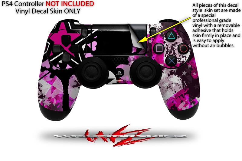 WraptorSkinz Skin compatible with Sony PS4 Dualshock Controller PlayStation 4 Original Slim and Pro Pink Star Splatter (CONTROLLER NOT INCLUDED)