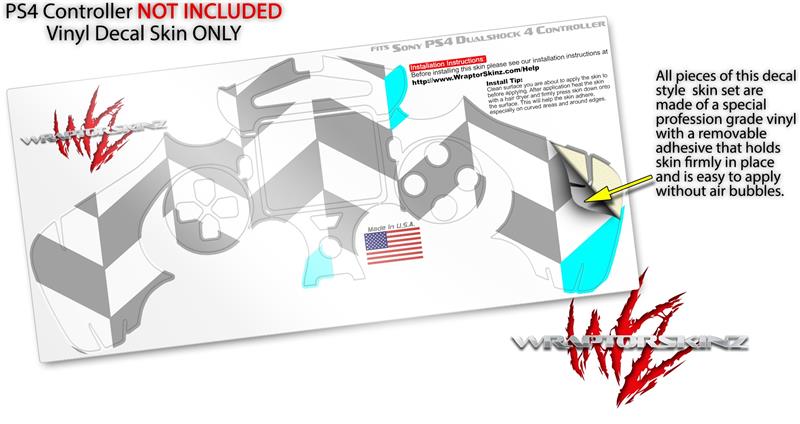 WraptorSkinz Skin compatible with Sony PS4 Dualshock Controller PlayStation 4 Original Slim and Pro Chevrons Gray And Aqua (CONTROLLER NOT INCLUDED)