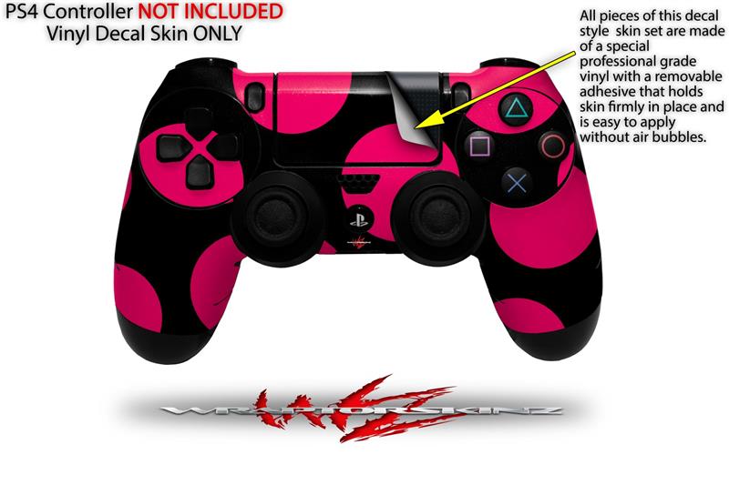 WraptorSkinz Skin compatible with Sony PS4 Dualshock Controller PlayStation 4 Original Slim and Pro Kearas Polka Dots Pink On Black (CONTROLLER NOT INCLUDED)