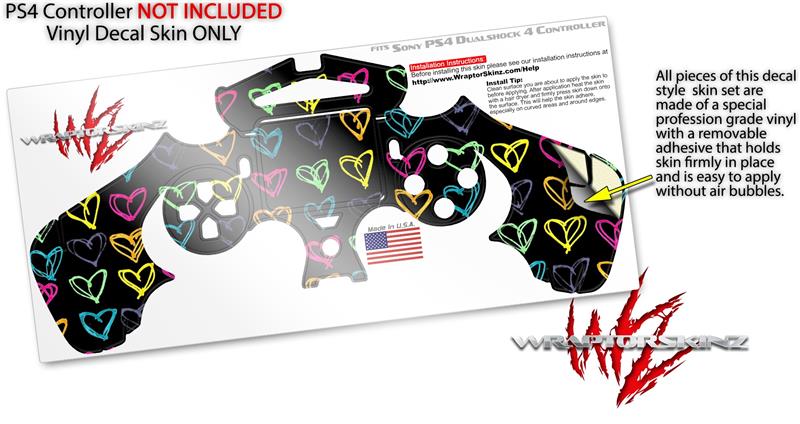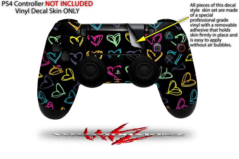 WraptorSkinz Skin compatible with Sony PS4 Dualshock Controller PlayStation 4 Original Slim and Pro Kearas Hearts Black (CONTROLLER NOT INCLUDED)