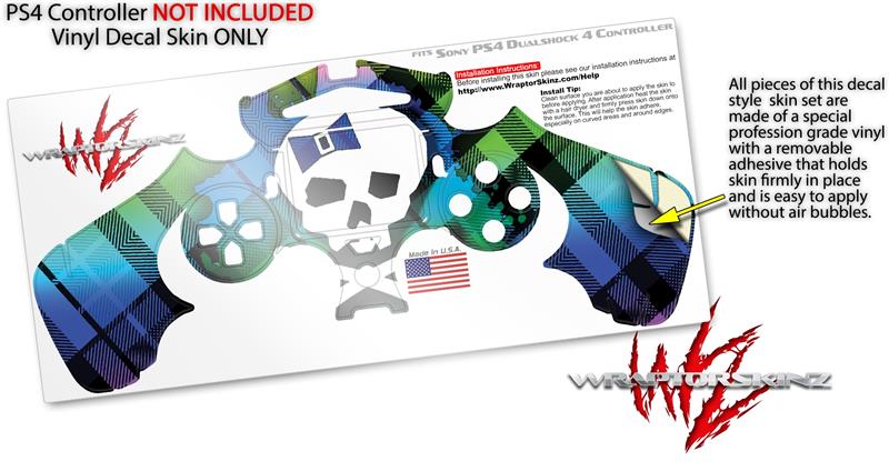 WraptorSkinz Skin compatible with Sony PS4 Dualshock Controller PlayStation 4 Original Slim and Pro Rainbow Plaid Skull (CONTROLLER NOT INCLUDED)