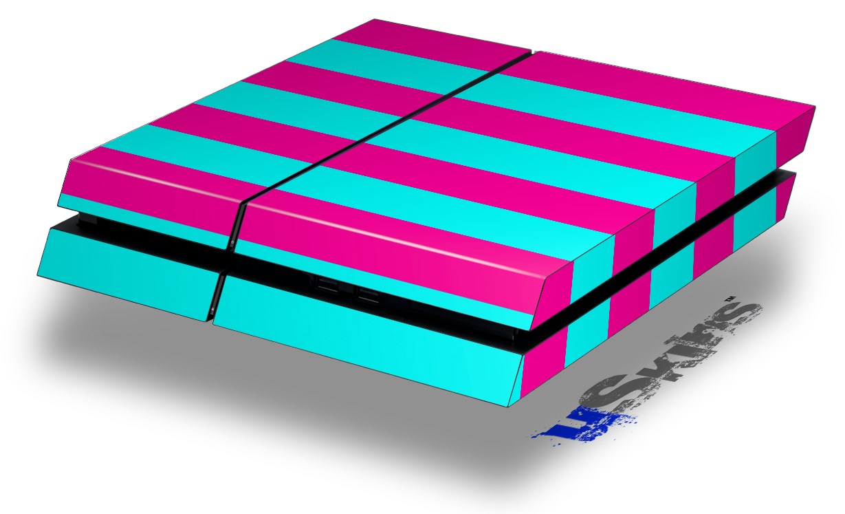 Vinyl Decal Skin Wrap compatible with Sony PlayStation 4 Original Console Psycho Stripes Neon Teal and Hot Pink (PS4 NOT INCLUDED)