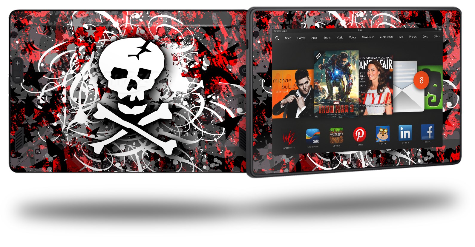 Skull Splatter - Decal Style Skin fits 2013 Amazon Kindle Fire HD 7 inch