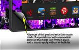 uSkins™ are self adhering vinyl skins that help prevent scratches and look great doing it. Unlike bulky silicon and plastic covers, uSkins are designed to be thin and very tough. uSkins are a composite of two layers of commercial grade materials. The bottom layer is a soft, flexible vinyl with a special removable adhesive that is easily positioned and applied without air bubbles. The bottom layer print with special UV protected, fade resistant inks that deliver superb photo quality designs in vibrant colors. Finally we bond a professional grade laminate over the entire skin adding a glossy protective finish.