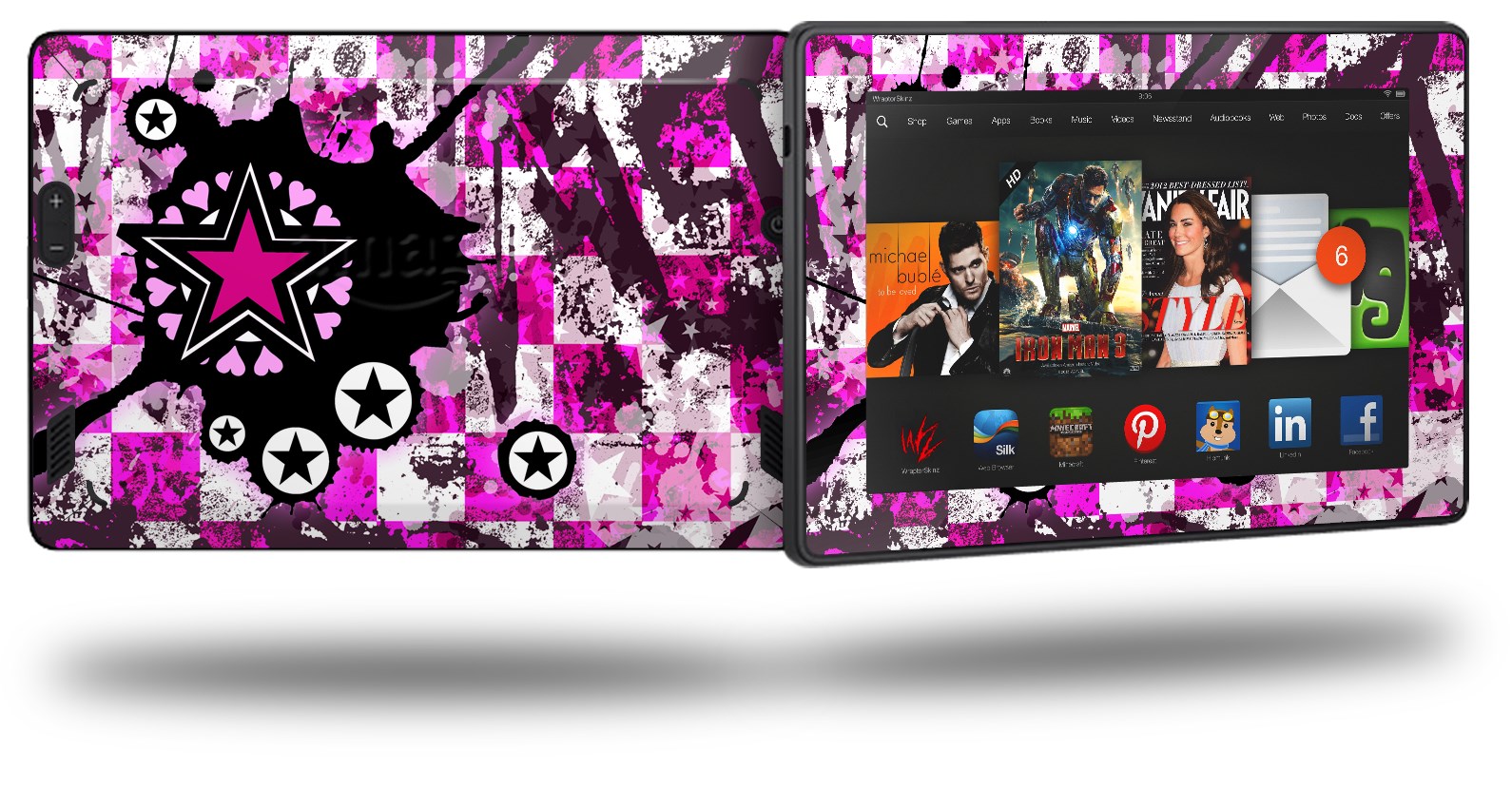 Pink Star Splatter - Decal Style Skin fits 2013 Amazon Kindle Fire HD 7 inch