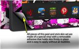 uSkins™ are self adhering vinyl skins that help prevent scratches and look great doing it. Unlike bulky silicon and plastic covers, uSkins are designed to be thin and very tough. uSkins are a composite of two layers of commercial grade materials. The bottom layer is a soft, flexible vinyl with a special removable adhesive that is easily positioned and applied without air bubbles. The bottom layer print with special UV protected, fade resistant inks that deliver superb photo quality designs in vibrant colors. Finally we bond a professional grade laminate over the entire skin adding a glossy protective finish.