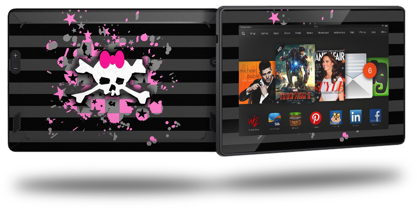 Pink Bow Skull - Decal Style Skin fits 2013 Amazon Kindle Fire HD 7 inch