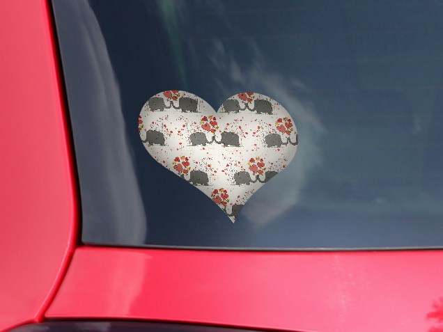 Elephant Love - I Heart Love Car Window Decal 6.5 x 5.5 inches