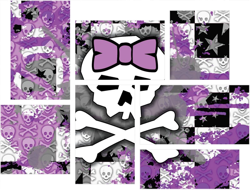 Princess Skull Purple - 7 Piece Fabric Peel and Stick Wall Skin Art (50x38 inches)