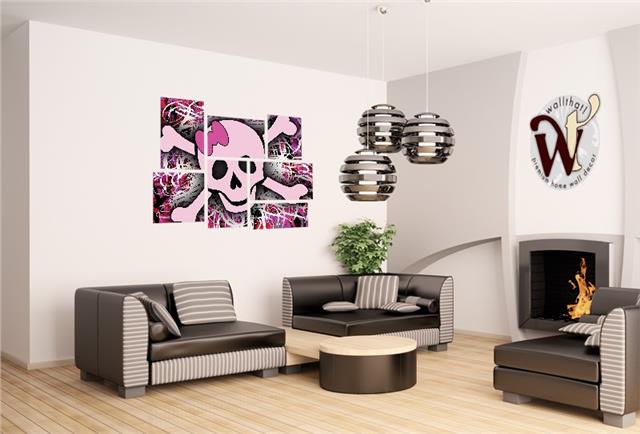 Pink Skull - 7 Piece Fabric Peel and Stick Wall Skin Art (50x38 inches)