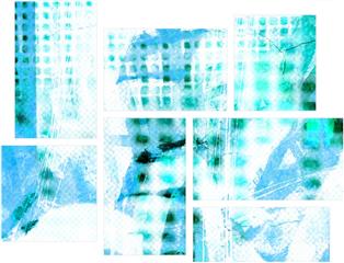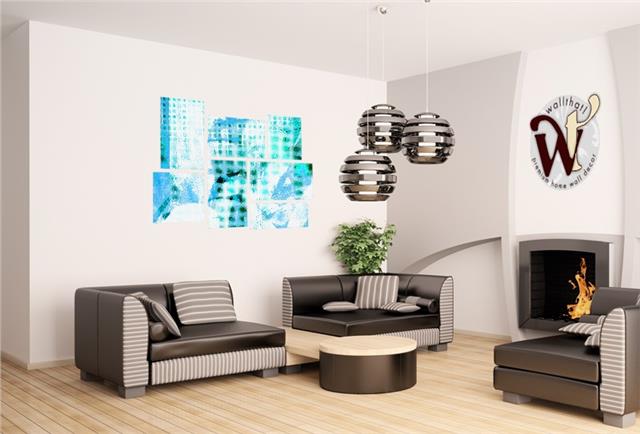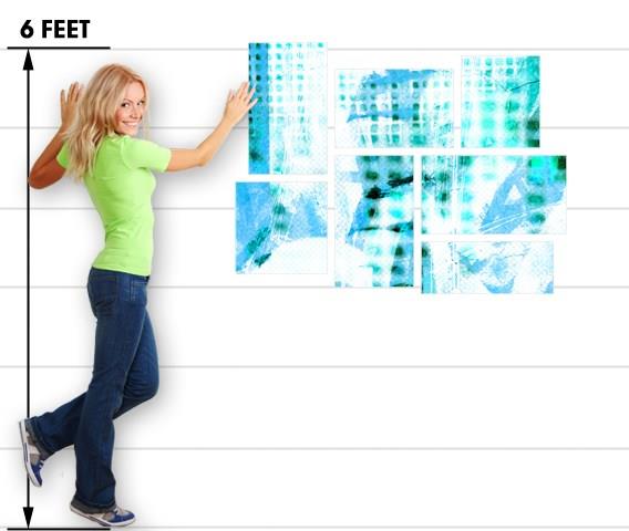 Electro Graffiti Blue - 7 Piece Fabric Peel and Stick Wall Skin Art (50x38 inches)