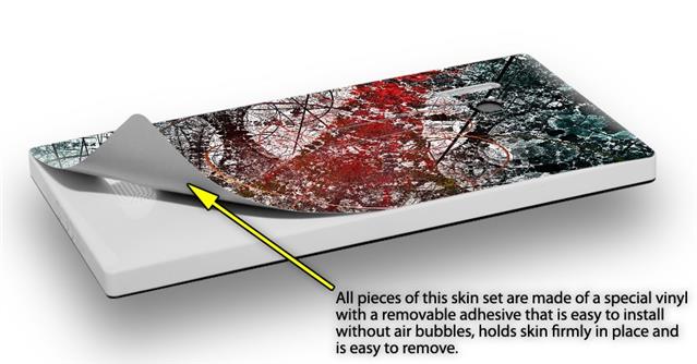 uSkins™ are self adhering vinyl skins that help prevent scratches and look great doing it. Unlike bulky silicon, plastic or metal cases and faceplates, uSkins are designed to be thin and very tough. uSkins are a composite of two layers of commercial grade materials. The bottom layer is a soft, flexible vinyl with a special removable adhesive that is easily positioned, applied without air bubbles, and effortlessly removed without leaving a sticky residue. Next we print the bottom layer with UV protected, fade resistant inks that deliver superb photo quality designs in vibrant colors. Finally we bond a professional grade laminate over the entire skin adding a glossy protective finish.