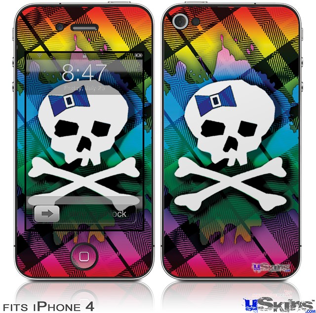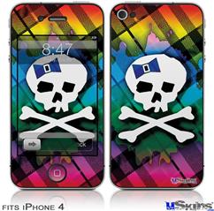 iPhone 4 Decal Style Vinyl Skin - Rainbow Plaid Skull (DOES NOT fit newer iPhone 4S)