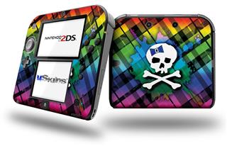 Rainbow Plaid Skull - Decal Style Vinyl Skin fits Nintendo 2DS - 2DS NOT INCLUDED