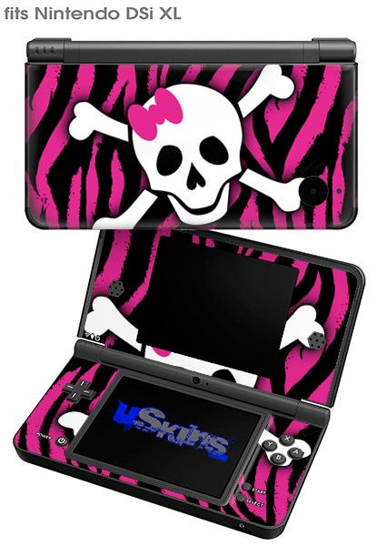 Pink Zebra Skull - Decal Style Skin fits Nintendo DSi XL (DSi SOLD SEPARATELY)