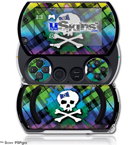 Rainbow Plaid Skull - Decal Style Skins (fits Sony PSPgo)