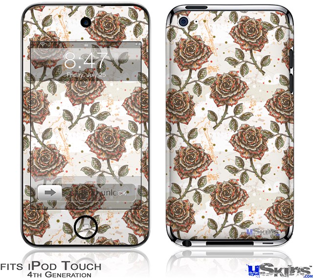 iPod Touch 4G Decal Style Vinyl Skin - Flowers Pattern Roses 20