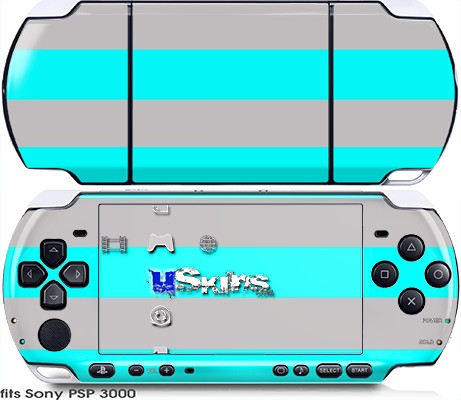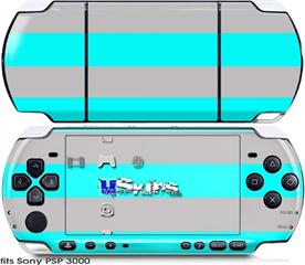 Sony PSP 3000 Skin - Psycho Stripes Neon Teal and Gray