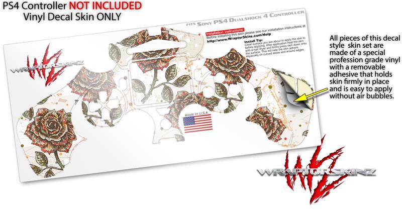 WraptorSkinz Skin compatible with Sony PS4 Dualshock Controller PlayStation 4 Original Slim and Pro Flowers Pattern Roses 20 (CONTROLLER NOT INCLUDED)