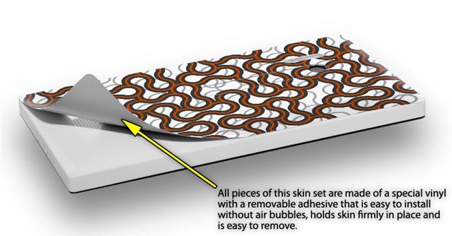 uSkins™ are self adhering vinyl skins that help prevent scratches and look great doing it. Unlike bulky silicon, plastic or metal cases and faceplates, uSkins are designed to be thin and very tough. uSkins are a composite of two layers of commercial grade materials. The bottom layer is a soft, flexible vinyl with a special removable adhesive that is easily positioned, applied without air bubbles, and effortlessly removed without leaving a sticky residue. Next we print the bottom layer with UV protected, fade resistant inks that deliver superb photo quality designs in vibrant colors. Finally we bond a professional grade laminate over the entire skin adding a glossy protective finish.