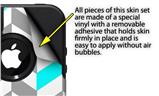 uSkins™ are self adhering vinyl decal style skins and are a great way to add a new look to your protective case. uSkins are a composite of two layers of commercial grade materials. The bottom layer is a soft, flexible vinyl with a special removable adhesive that is easily positioned, applied without air bubbles. Next we print the bottom layer with UV protected, fade resistant inks that deliver superb photo quality designs in vibrant colors. Finally we bond a professional grade laminate over the entire skin adding a glossy protective finish.