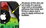 uSkins™ are self adhering vinyl decal style skins and are a great way to add a new look to your protective case. uSkins are a composite of two layers of commercial grade materials. The bottom layer is a soft, flexible vinyl with a special removable adhesive that is easily positioned, applied without air bubbles. Next we print the bottom layer with UV protected, fade resistant inks that deliver superb photo quality designs in vibrant colors. Finally we bond a professional grade laminate over the entire skin adding a glossy protective finish.