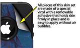 uSkins™ are self adhering vinyl decal style skins and are a great way to add a new look to your protective case. uSkins are a composite of two layers of commercial grade materials. The bottom layer is a soft, flexible vinyl with a special removable adhesive that is easily positioned, applied without air bubbles. Next we print the bottom layer with UV protected, fade resistant inks that deliver superb photo quality designs in vibrant colors. Finally we bond a professional grade laminate over the entire skin adding a glossy protective finish.