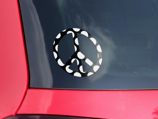 Kearas Polka Dots White On Black - Peace Sign Car Window Decal 6 x 6 inches