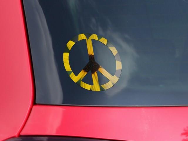Yellow Daisy - Peace Sign Car Window Decal 6 x 6 inches