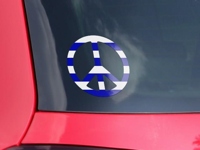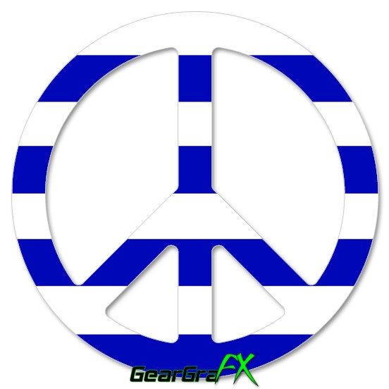 Psycho Stripes Blue and White - Peace Sign Car Window Decal 6 x 6 inches