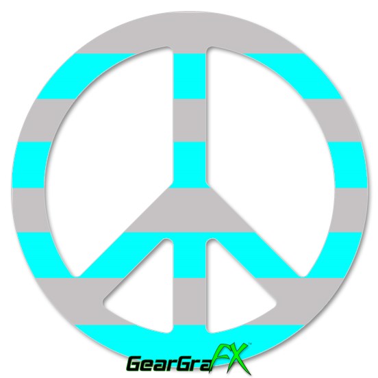 Psycho Stripes Neon Teal and Gray - Peace Sign Car Window Decal 6 x 6 inches