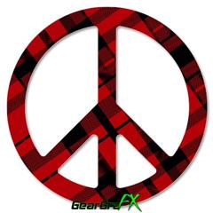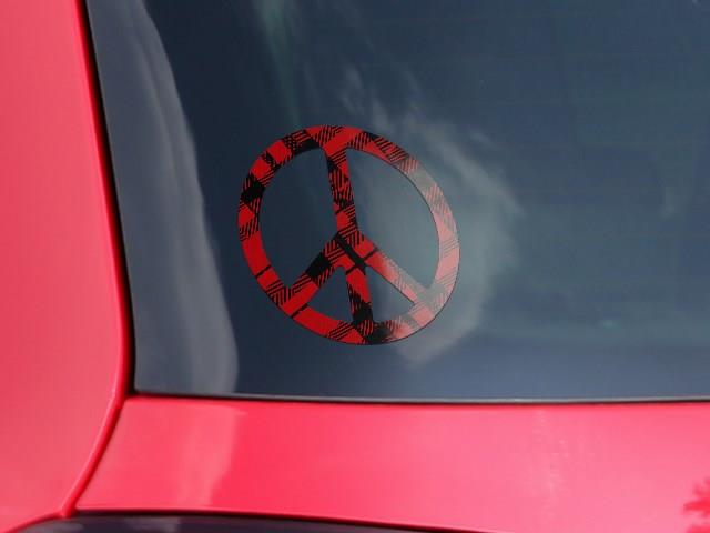 Red Plaid - Peace Sign Car Window Decal 6 x 6 inches