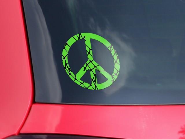 Ripped Fishnets Green - Peace Sign Car Window Decal 6 x 6 inches