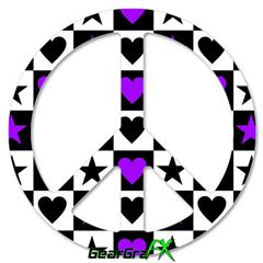 Purple Hearts And Stars - Peace Sign Car Window Decal 6 x 6 inches