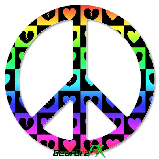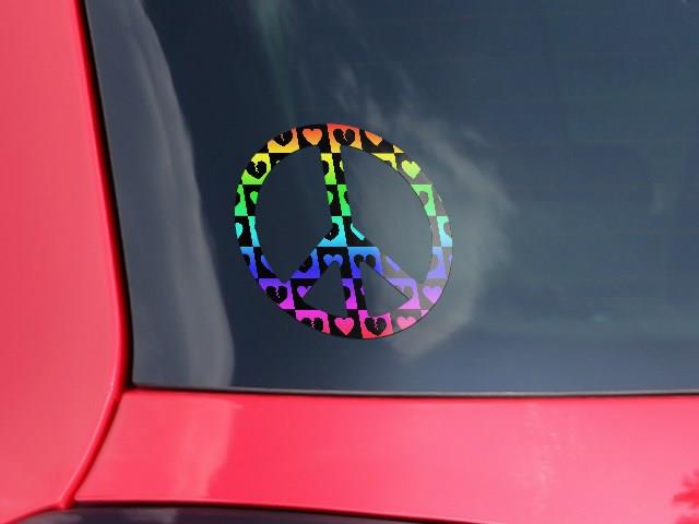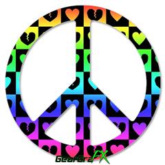 Love Heart Checkers Rainbow - Peace Sign Car Window Decal 6 x 6 inches