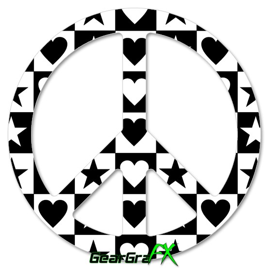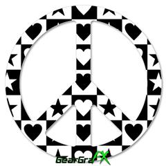 Hearts And Stars Black and White - Peace Sign Car Window Decal 6 x 6 inches