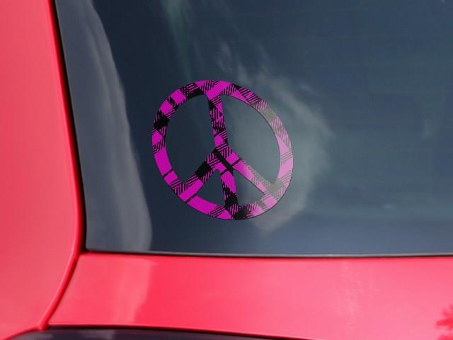 Pink Plaid - Peace Sign Car Window Decal 6 x 6 inches