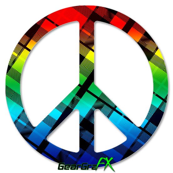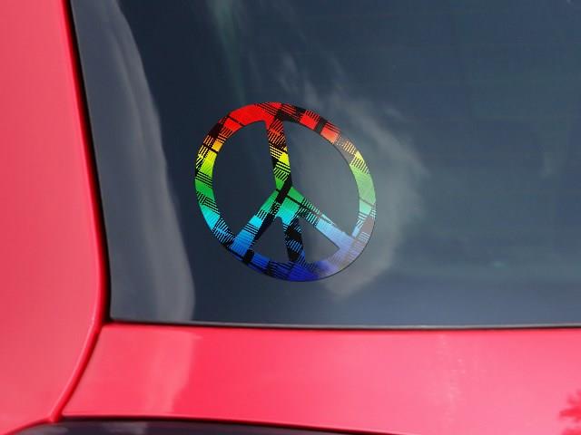 Rainbow Plaid - Peace Sign Car Window Decal 6 x 6 inches