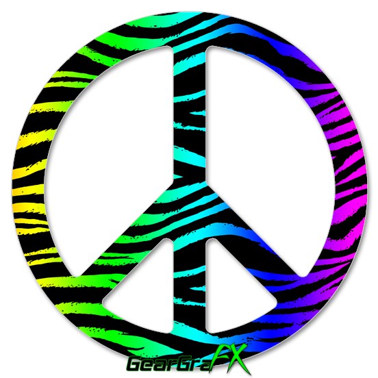 Rainbow Zebra - Peace Sign Car Window Decal 6 x 6 inches