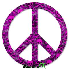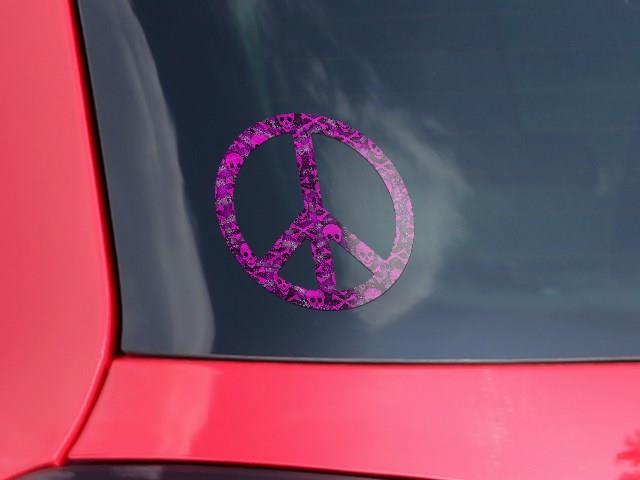 Pink Skull Bones - Peace Sign Car Window Decal 6 x 6 inches