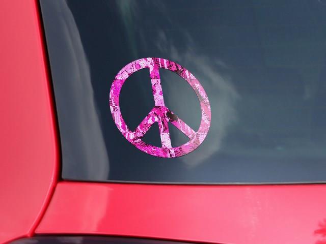 Pink Plaid Graffiti - Peace Sign Car Window Decal 6 x 6 inches